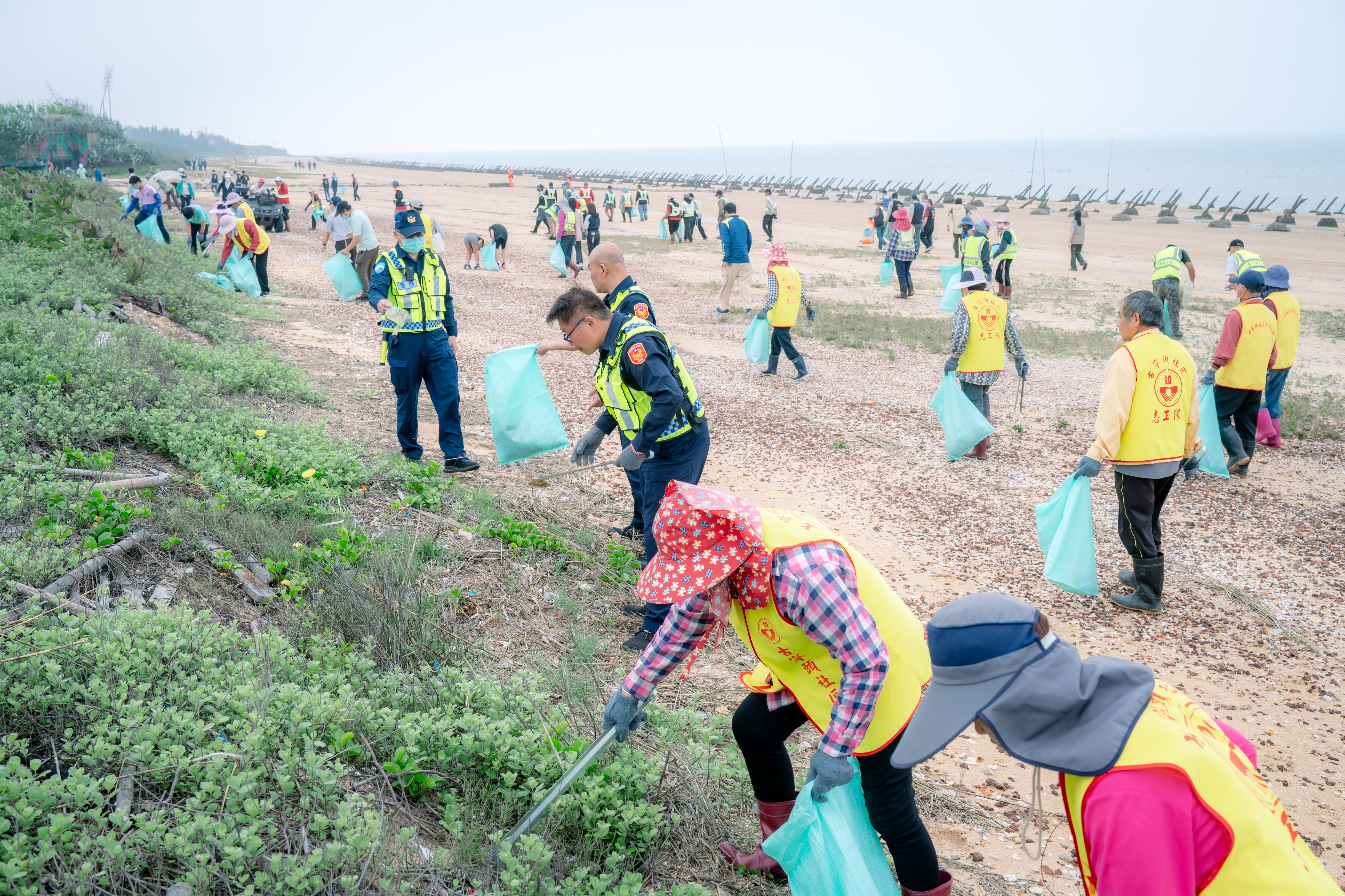 為響應向海致敬政策、維護海岸環境整潔及推動環境永續發展,並加強與在地社區、學校、企業及機關團體間之夥伴關係,內政部國家公園署金門國家公園管理處(以下簡稱金管處)於114年4月24日(星期四)下午假金寧鄉安東一營區海灘辦理淨灘活動,活動邀請到古寧頭社區發展協會、金寧鄉古寧國民小學、金門縣電信事業產業工會、中華電信股份有限公司金門營業處、台灣電力股份有限公司金門區營業處、海洋委員會海巡署金馬澎分署第九岸巡隊、金門縣環境保護局、金門縣港務處、金門縣金寧鄉公所、內政部警政署保安警察第七總隊第四大隊等機關團體與本處同仁、志工共襄盛舉,合計約138人熱情投入,共清理海岸廢棄物約209公斤。